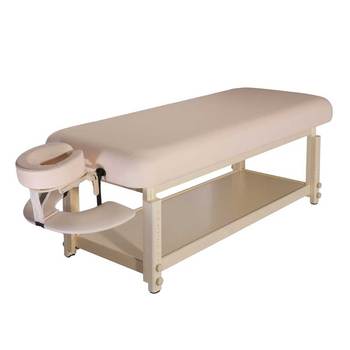 Mesa de masaje facial de belleza plana de estilo Hotel de terapia de spa estacionaria de madera SAF con ajuste de altura y almacenamiento abierto